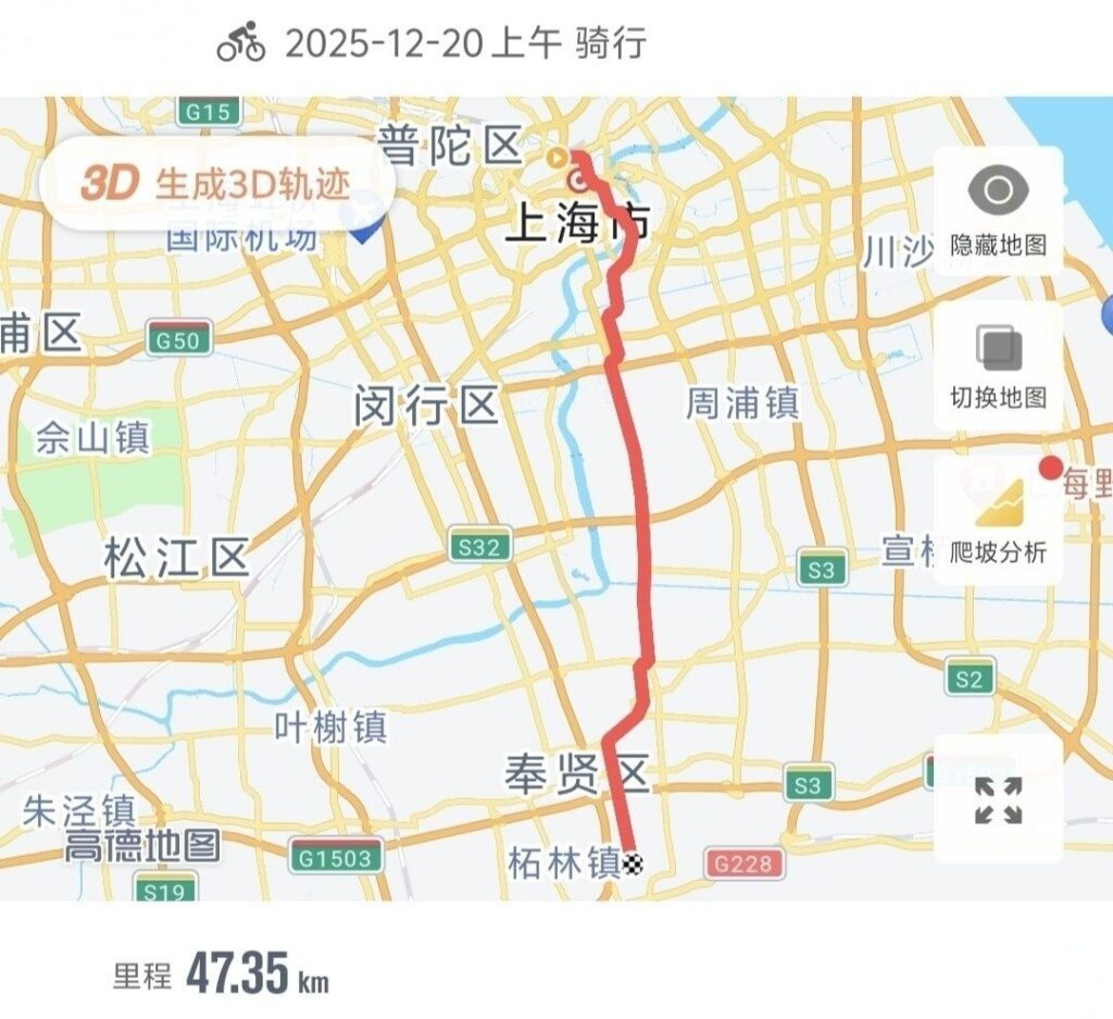 路线非常单纯,从一天下出发,摆渡过江后一路往南。浦东的非机动车道又宽又平,特别是过了徐浦大桥后感受更明显。