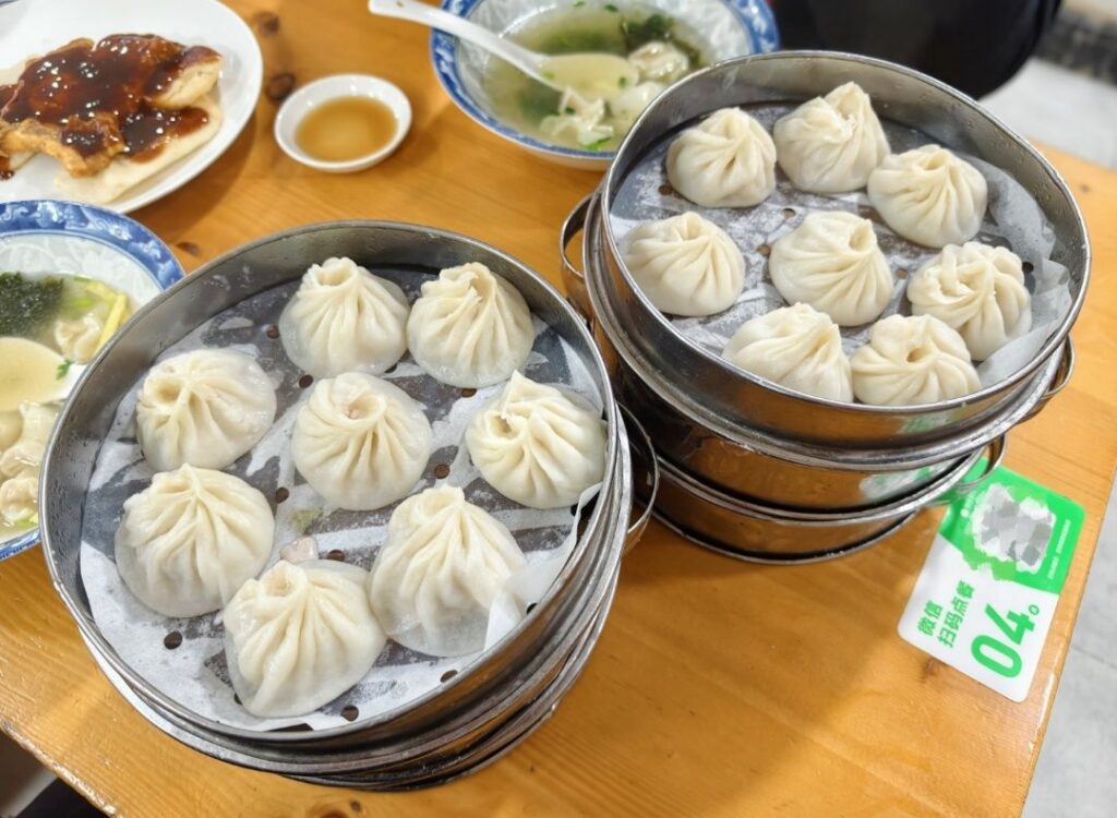 好在体力足够,还是推着车到了目的地福春小笼馆,享受了一波8块钱一屉小笼包的奉贤物价: